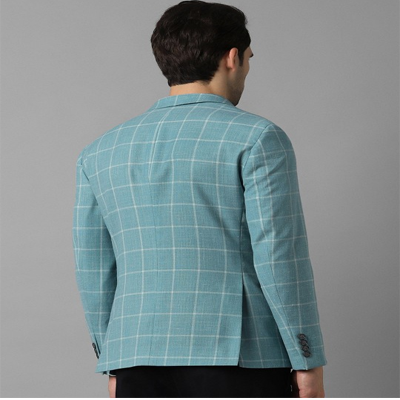 Blazer & coatsBlue checked slim-fit formal blazer, has a notched lapel, long sleeves, single-breasted with double button closure, two flap pockets, one welt pocket and a double-vented back hem