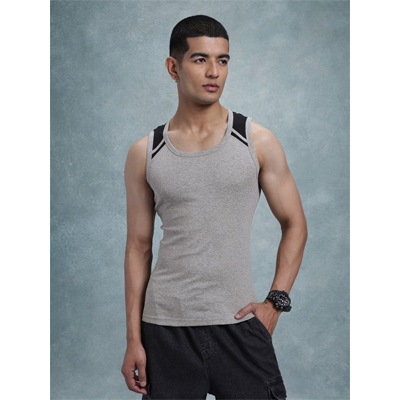 Pack of two solid innerwear vests in grey melange & black colourEach has a round neck, sleeveless, and knitted fabricSize & FitThe model (height 6') is wearing a size MMaterial & Care100% CottonMachine wash
